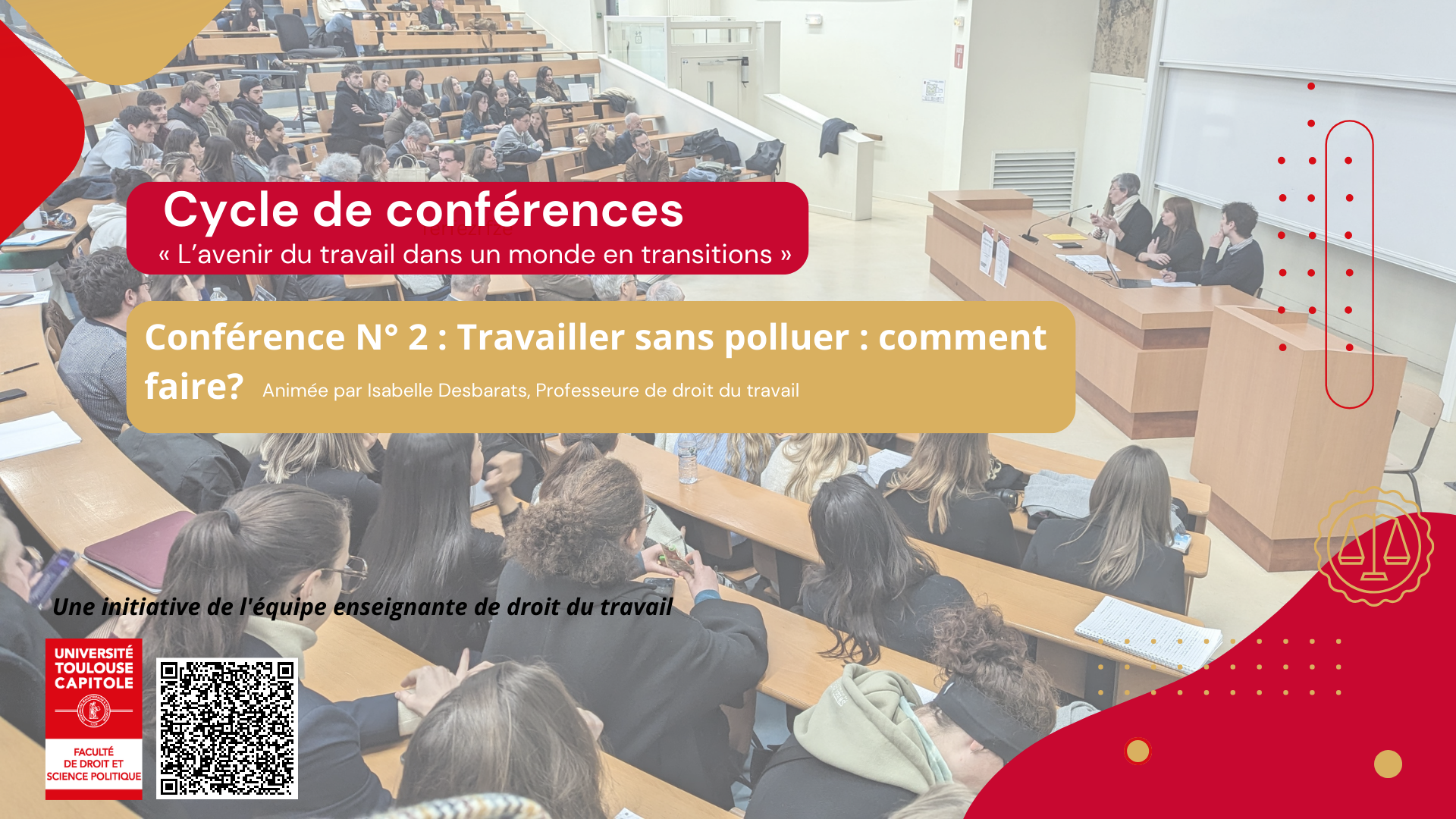L’équipe enseignante du Master droit social de l'UT Capitole organise, avec la participation de professionnels et d’étudiants des Masters, un cycle de 3 conférences sur "l'avenir du travail dans un monde en transition".