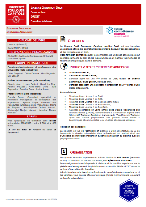 auprès du service Executive Education and Digital University (EEDU) de l’Université Toulouse Capitole : Anais Toulouzat, Manufacture des Tabacs, 21 allée de Brienne, Bâtiment Q, 1er étage