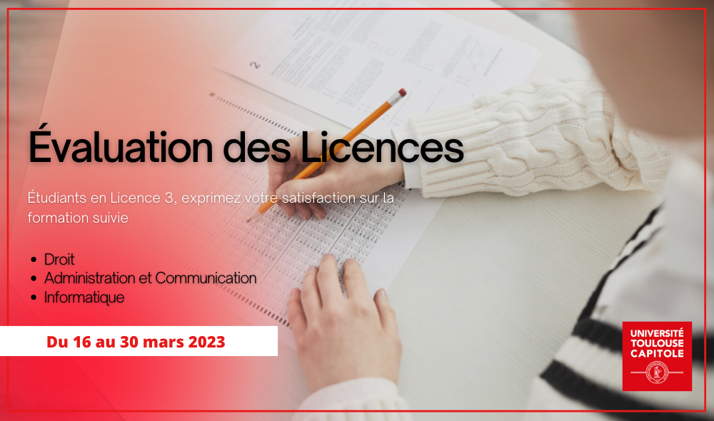 L'Université Toulouse Capitole lance un dispositif d'évaluation des Licences. A partir du 16 mars, les étudiants en 3ème année de Licence ou de Licence professionnelle pourront s'exprimer sur la formation suivie durant ces trois dernières années.