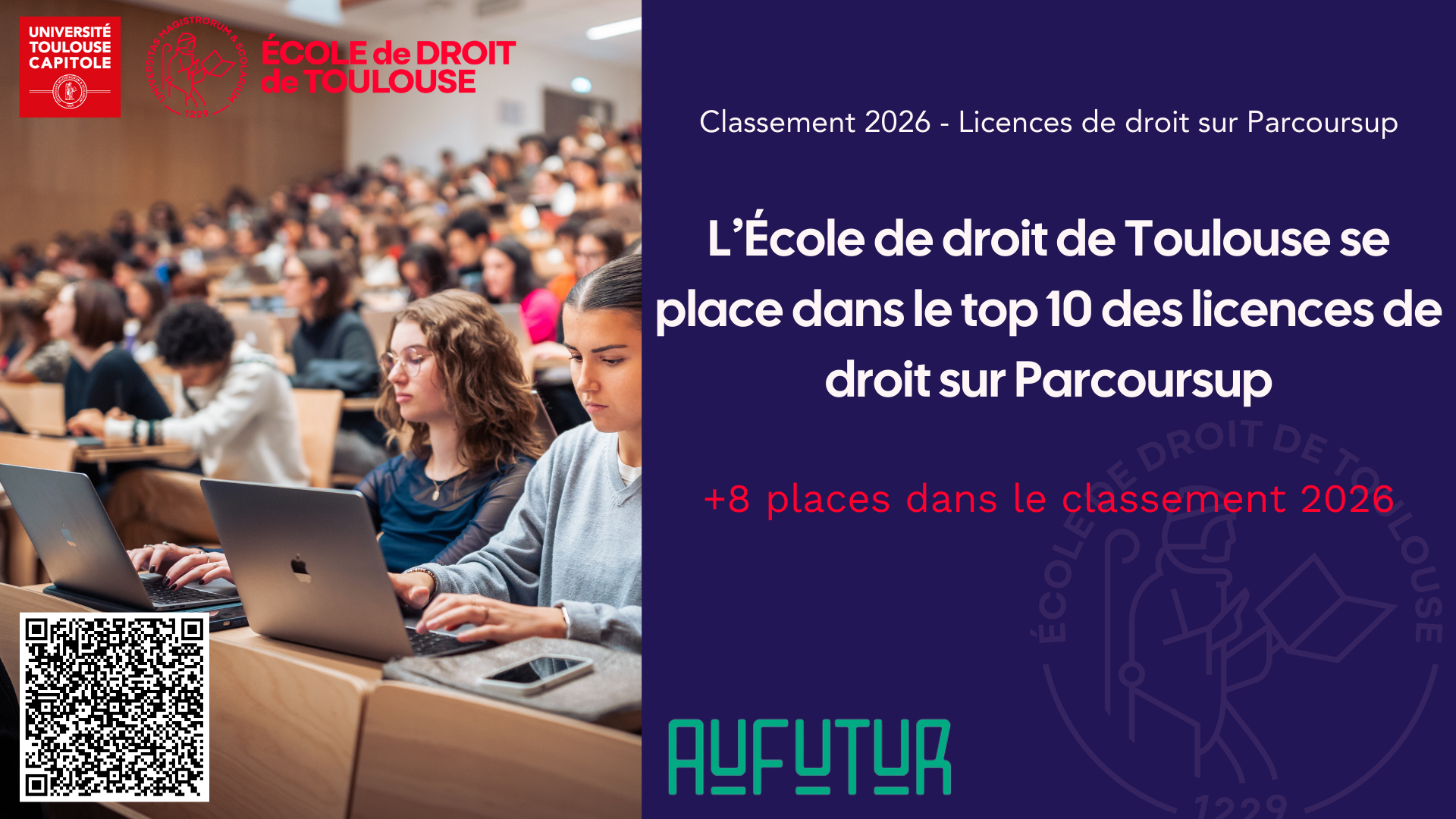 L’École de droit de Toulouse progresse de 8 places dans le classement des licences en droit sur Parcoursup 2026 !