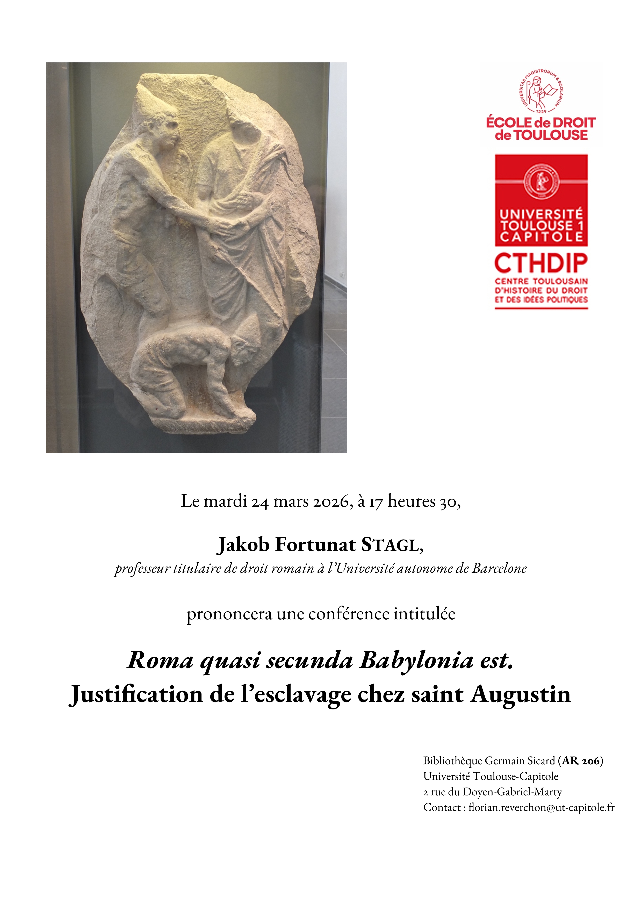 "Roma quasi secunda Babylonia est. Justification de l’esclavage chez saint Augustin", conférence de Jakob Fortunat STAGL (Université autonome de Barcelone) organisée par Florian Reverchon (CTHDIP)