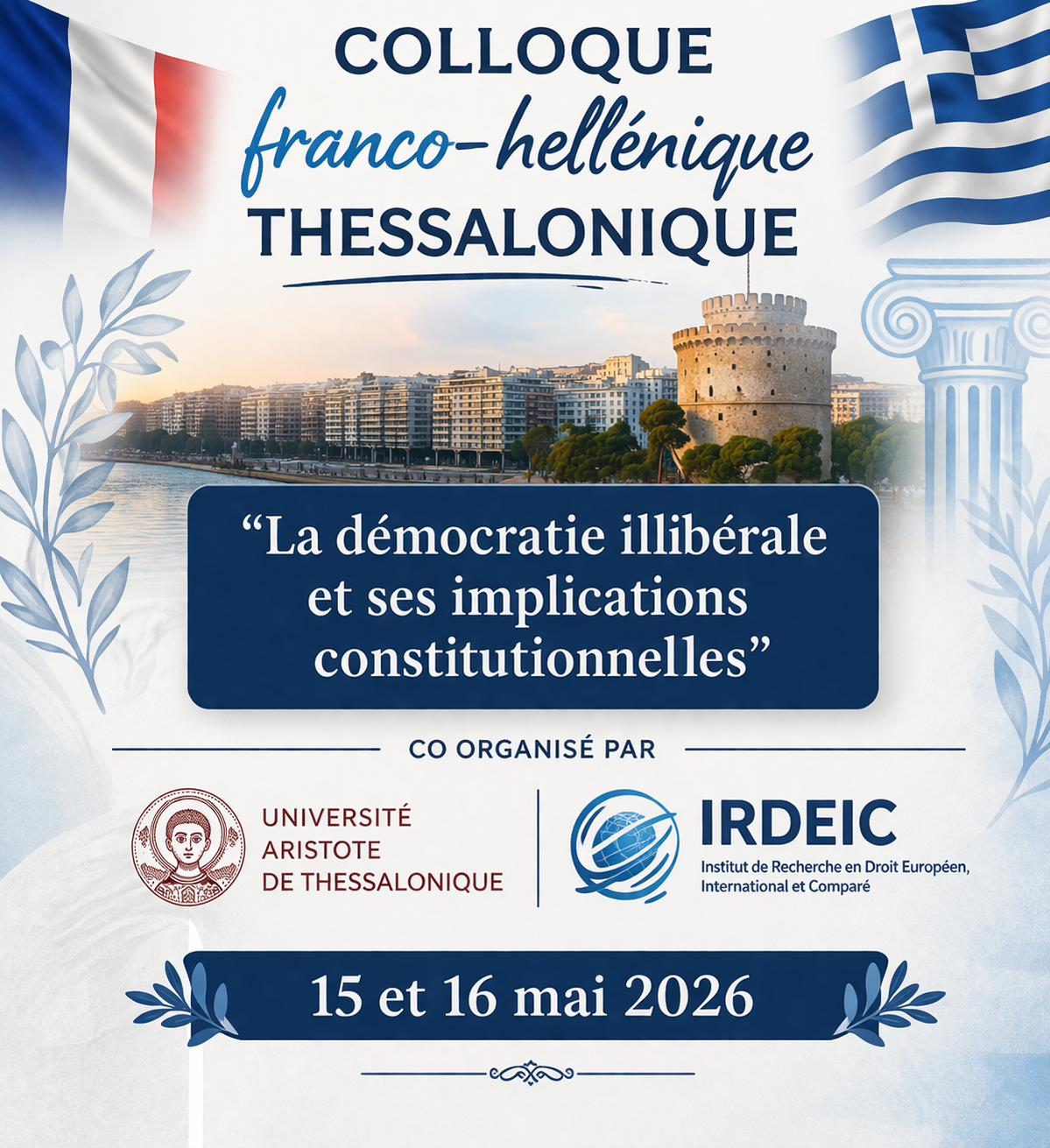 Colloque franco-hellénique Thessalonique, " .La démocratie illibérale et ses implications constitutionnelles " co organisé par l'Université Aristote de Thessalonique et l'IRDEIC - 15 et 16 mai 2026