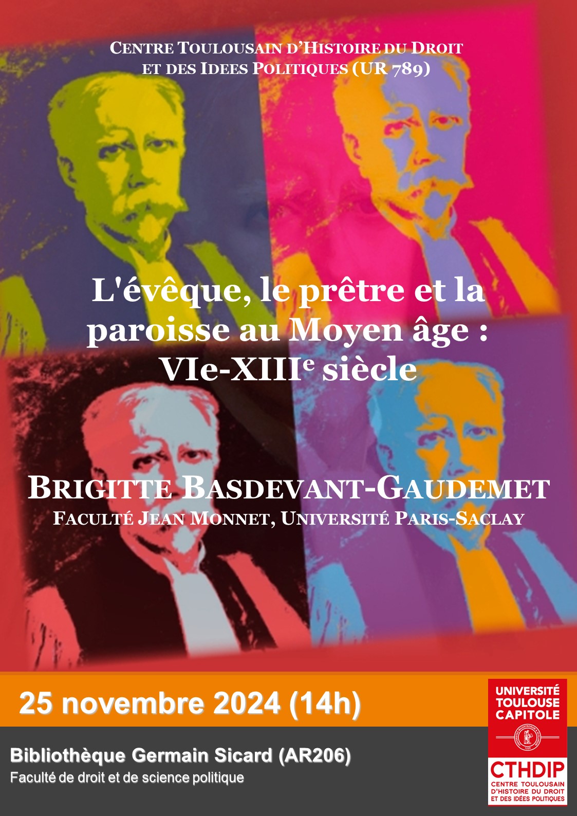 "L'évêque, le prêtre et la paroisse au Moyen-Âge", conférence de Brigitte Basdevant-Gaudemet (Faculté Jean Monnet, Université Paris-Saclay), organisée par le CTHDIP