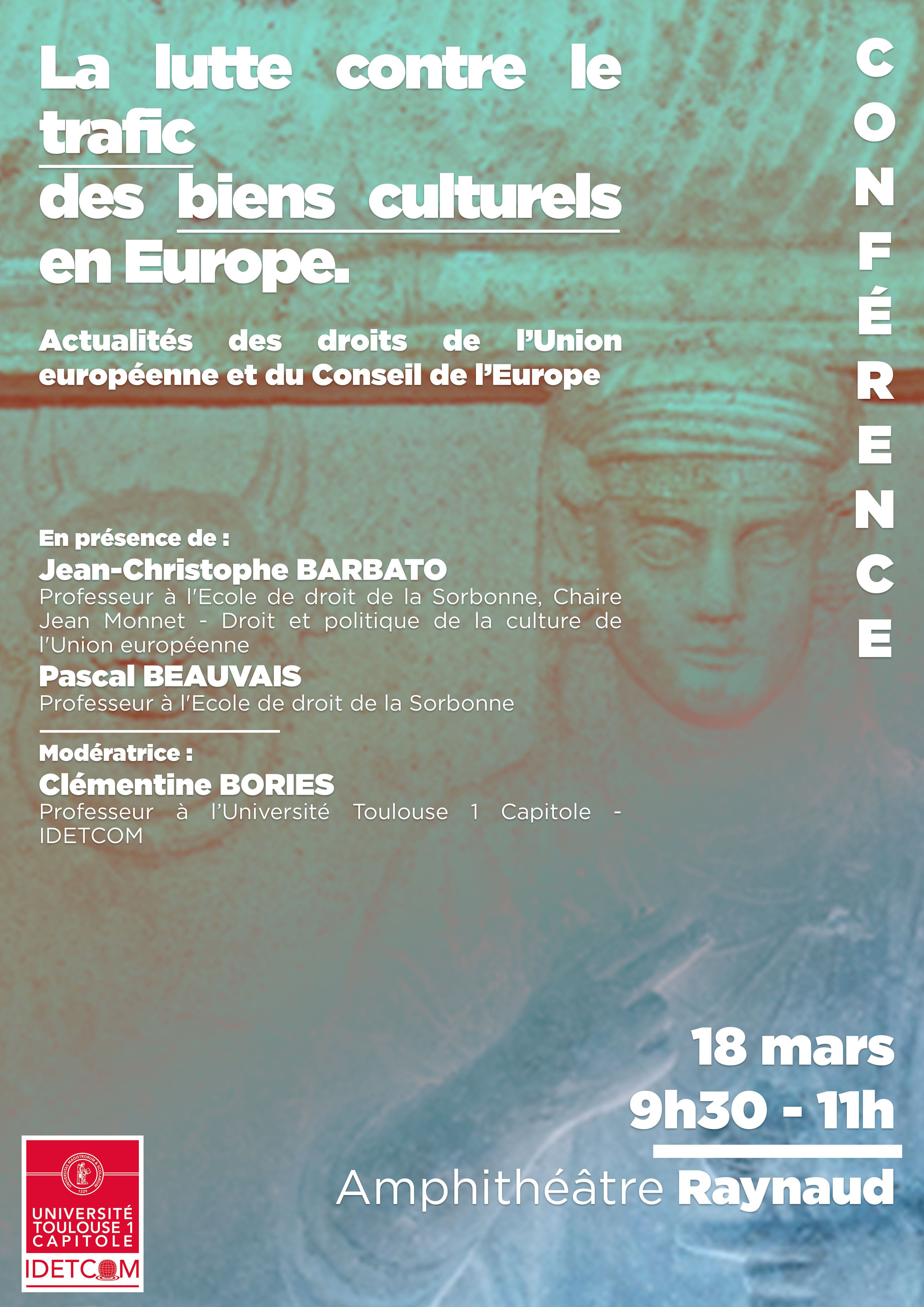 La lutte contre le trafic des biens culturels en Europe. Actualités des droits de l’Union européenne et du Conseil de l’Europe. En présence de Jean-Christophe Barbato Professeur à l'Ecole de droit de la Sorbonne, Chaire Jean Monnet et Pascal Beauvais Professeur à l'Ecole de droit de la Sorbonne.