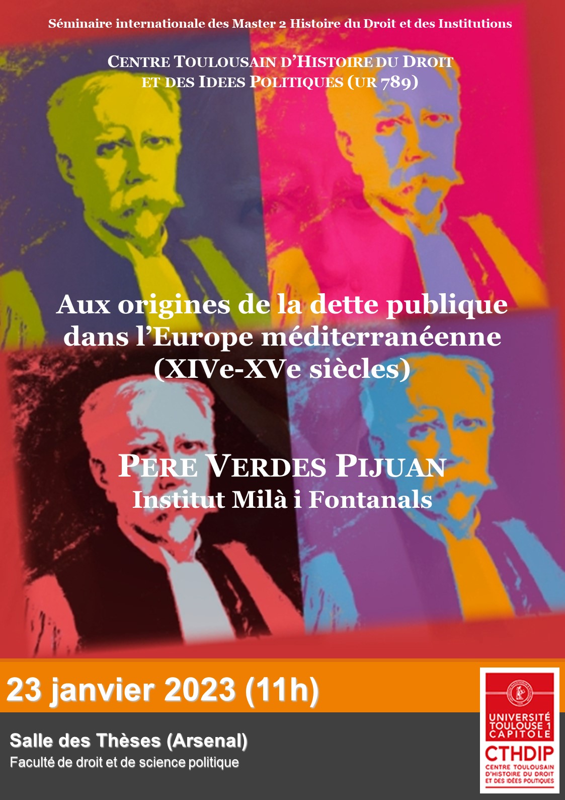 C’est dans ce contexte historiographique qu’il faut resituer la dette publique documentée à la fin du Moyen Âge dans la couronne d’Aragon, une dette qui, comme nous le verrons, présente un cas particulièrement singulier et relativement méconnu. La couronne d’Aragon est alors une confédération de territoires placés sous l’autorité d’un même monarque, tout en jouissant chacun d’une autonomie politique considérable. Cet ensemble était composé, depuis le XIIIe siècle, par les royaumes d’Aragon, de Valence et de Majorque, et par la principauté de Catalogne. À ces territoires de la péninsule Ibérique vont s’ajouter au cours des XIVe et XVe siècles des îles, la Sardaigne et la Corse, la Sicile, ainsi que le royaume de Naples. Il faut cependant souligner que cette expansion territoriale considérable ne saurait être bien comprise sans mentionner la dette publique, puisque c’est elle qui aura permis à un état féodal totalement décentralisé et à une monarchie disposant de faibles ressources de concurrencer les grandes puissances de l'époque, telles que la dynastie angevine, Gênes ou encore la Castille. Ma conférence consistera donc à exposer les principales caractéristiques de cette dette consolidée, afin de juger s’il s’est agi, en comparaison avec d’autres cas contemporains, d’un phénomène équivalent ou similaire à ce que l’on a identifié comme « révolution financière ».