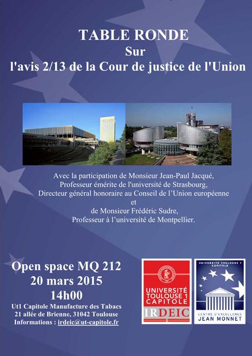 "Avis 2/13 de la Cour de justice de l'UE" Table ronde de l'IRDEIC avec la participation de M. Jean-Paul Jacqué