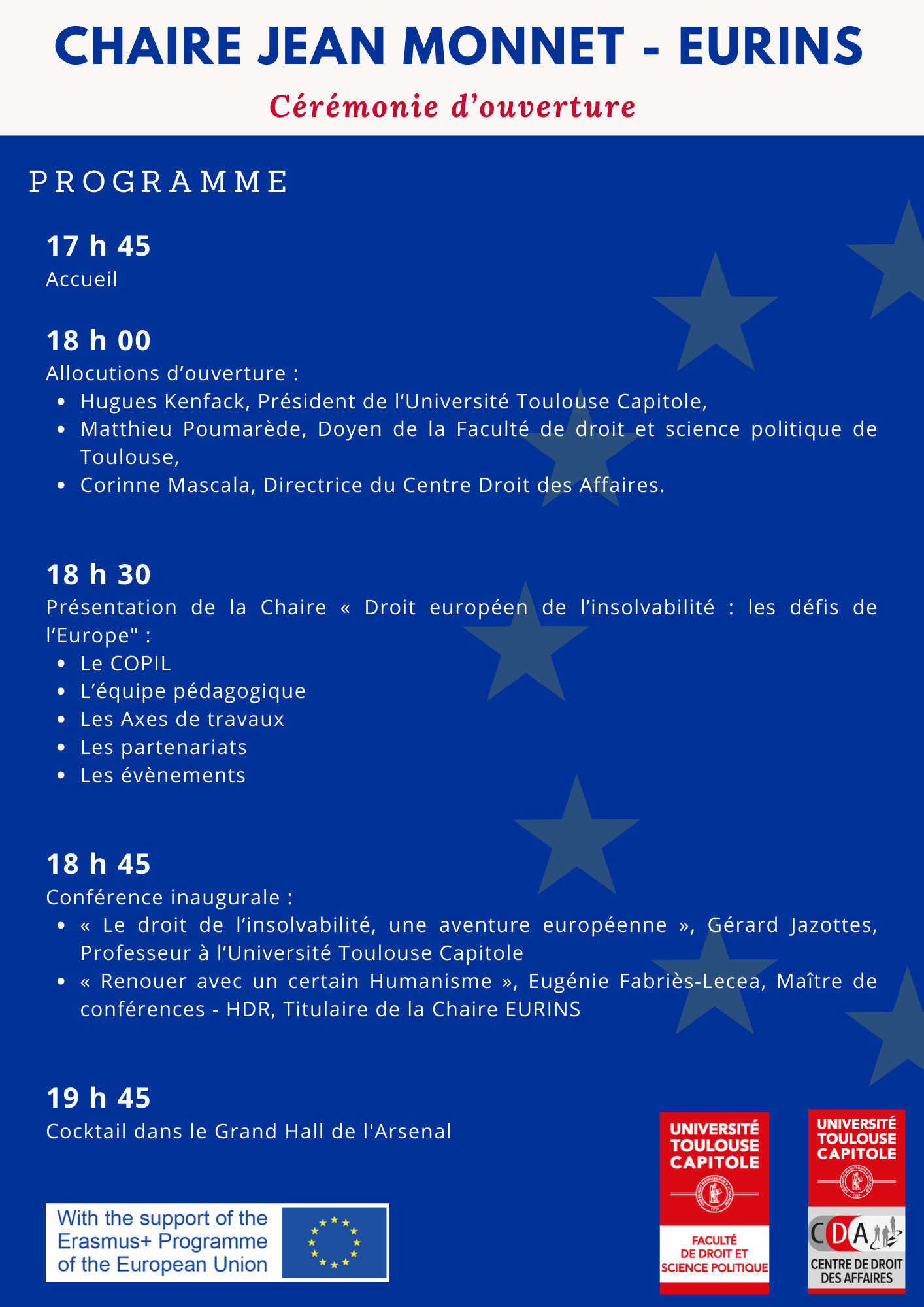 a le plaisir de vous convier à la cérémonie d'ouverture de la Chaire Jean Monnet - EURINS