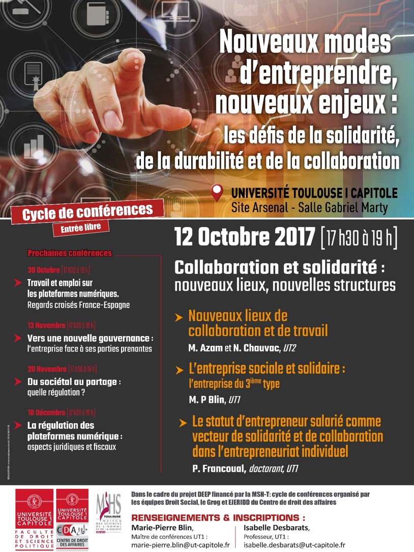 "Collaboration et solidarités, nouveaux lieux, nouvelles structures"- Conférence du Centre de droit des affaires, organisée M-P. Blin et I. Desbarats