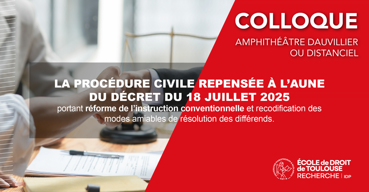 Ce colloque, organisé par l’Institut de Droit privé de l’École de Droit de Toulouse, s’inscrit dans une actualité règlementaire majeure : la réforme de l’instruction conventionnelle et la recodification du Livre V du Code de procédure civile opérées par le décret du 18 juillet 2025. Réunissant des universitaires reconnus ainsi que des praticiens du droit, l’événement propose une analyse approfondie des enjeux et des conséquences de cette réforme, marquée par la recherche d’un nouvel équilibre de la procédure civile. Si la Chancellerie a souhaité redynamiser la procédure civile et opérer un véritable changement de culture, il s’agira d’en mesurer les apports concrets et les innovations procédurales qu’elle introduit.