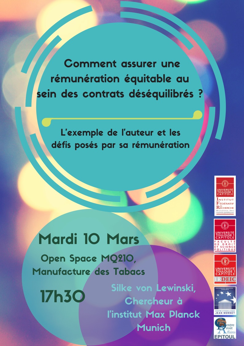 "Comment assurer une rémunération équitable au sein des contrats déséquilibrés : l'exemple de l'auteur et les défis posés par sa rémunération." Conférence CDA Epitoul - IRDEIC - IFR
