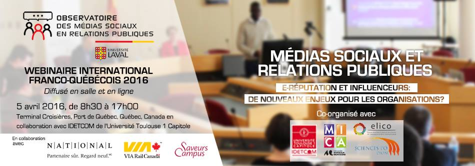 La partie québécoise du Webinaire international réunira des professeurs-chercheurs québécois et européens du secteur des communications numériques, des professionnels en relations publiques et des étudiants. Les conférences, discussions et tables rondes auront comme objectif de présenter des études de cas d’usages et de pratiques professionnelles dans les médias sociaux.