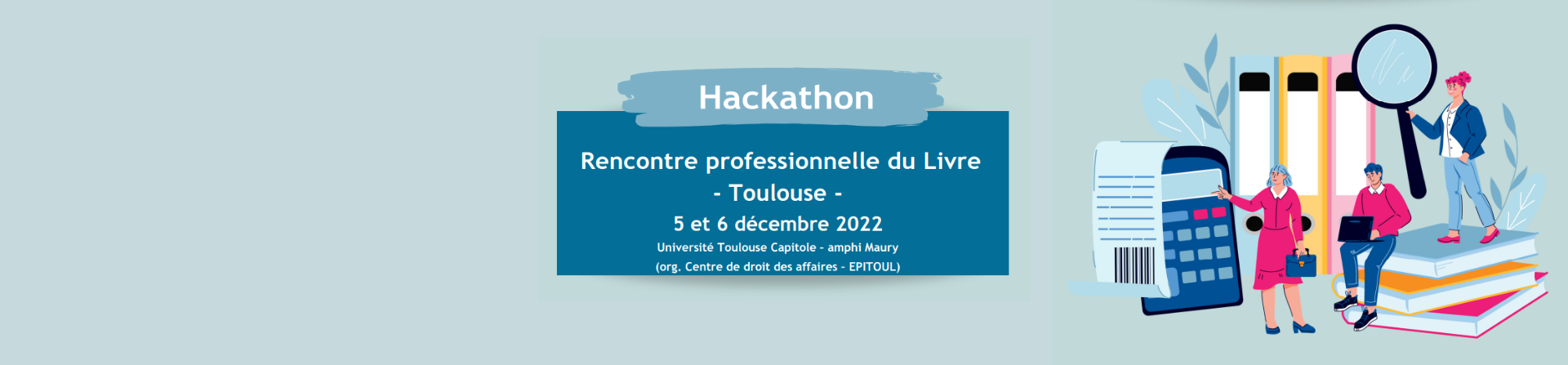 EPITOUL, le Centre de Droit des Affaires et le Master II Propriété Intellectuelle de l'Université Toulouse Capitole organisent les 5 et 6 décembre un Hackathon, une rencontre professionnelle du Livre.