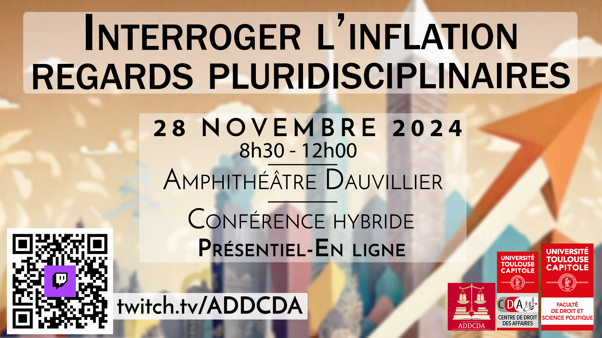 Après les thèmes de L'impact des nouvelles technologies sur le droit et ses acteurs, Sport et Droit des Affaires, Art et Droit, Guerre économique et Droit, Luxe et Droit, et Stratégies et Droit, Durabilité et Droit cette nouvelle journée d'étude sera dédiée au thème : « Interroger l'inflation - Regards pluridisciplinaires ».