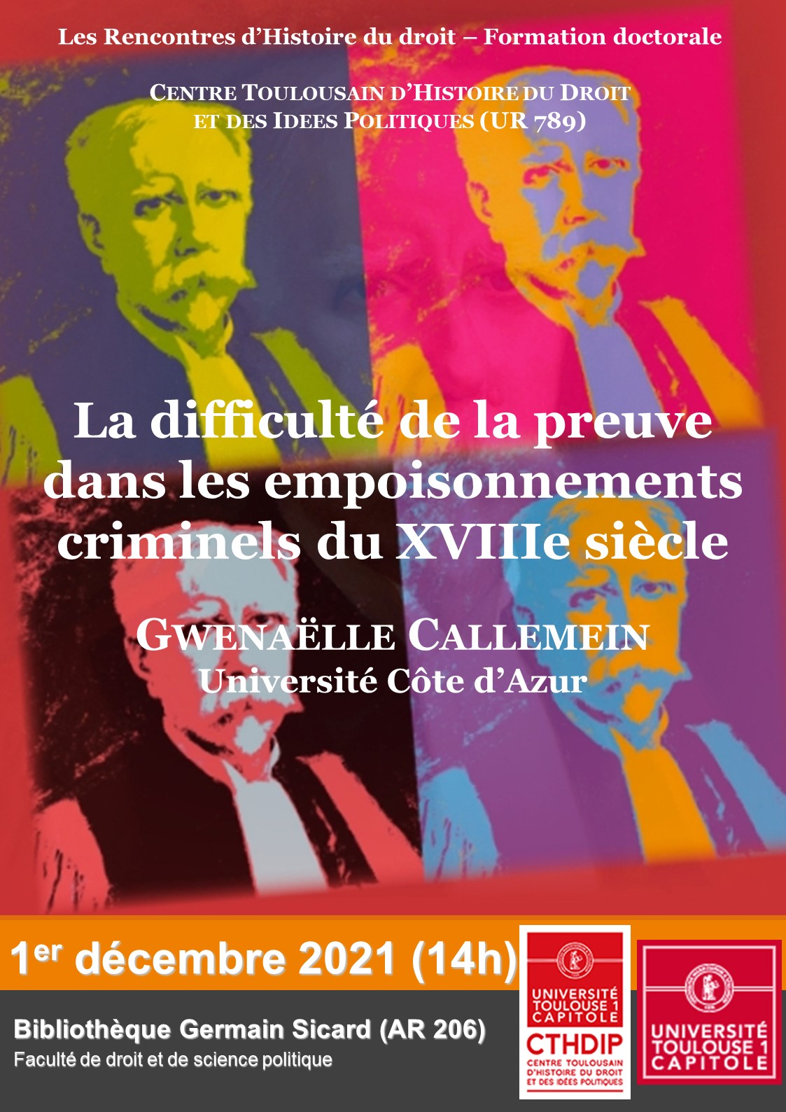 "La difficulté de la preuve dans les empoisonnements criminels du XVIIIe siècle", conférence organisée par le CTHDIP