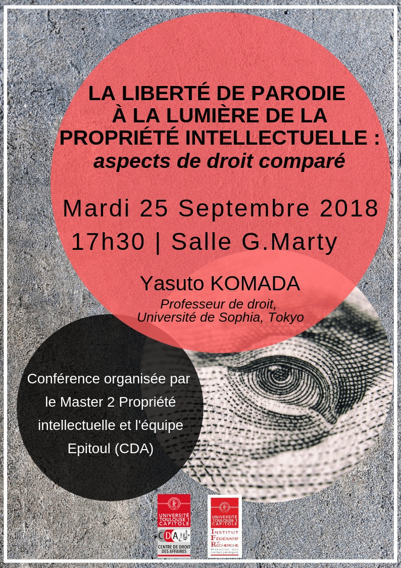 "La liberté de parodie à la lumière de la propriété intellectuelle: aspects de droit comparé", Conférence CDA EPITOUL et IFR