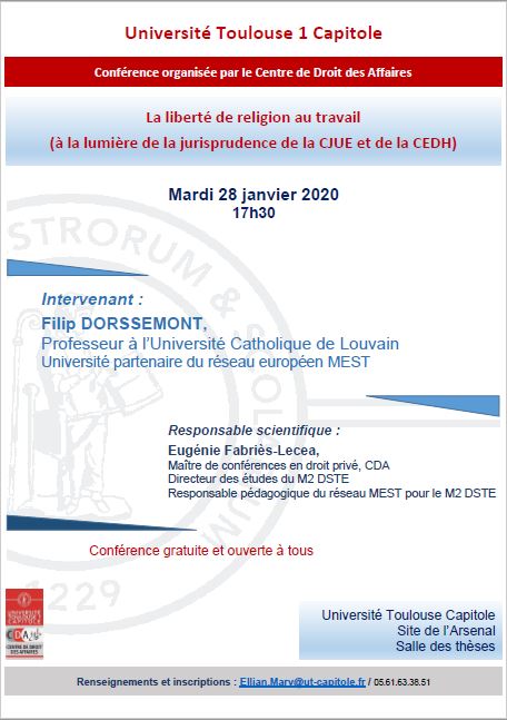 "La liberté de religion au travail", conférence de Filip Dorssemont, organisée par l'équipe droit social du CDA