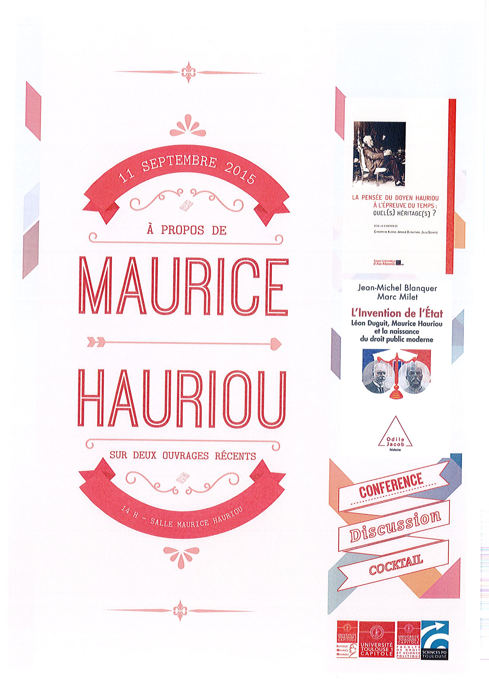 À l’occasion de la parution de l’ouvrage collectif « La pensée du doyen Hauriou à l’épreuve du temps : quel(s) héritage(s) ? » (dir. Christophe Alonso, Arnaud Duranthon et Julia Schmitz, paru aux PUAM), réalisé avec le soutien de l’Université Toulouse 1 Capitole, de la faculté de droit de Toulouse et de Sciences-Po Toulouse, l’Institut Maurice Hauriou organise: