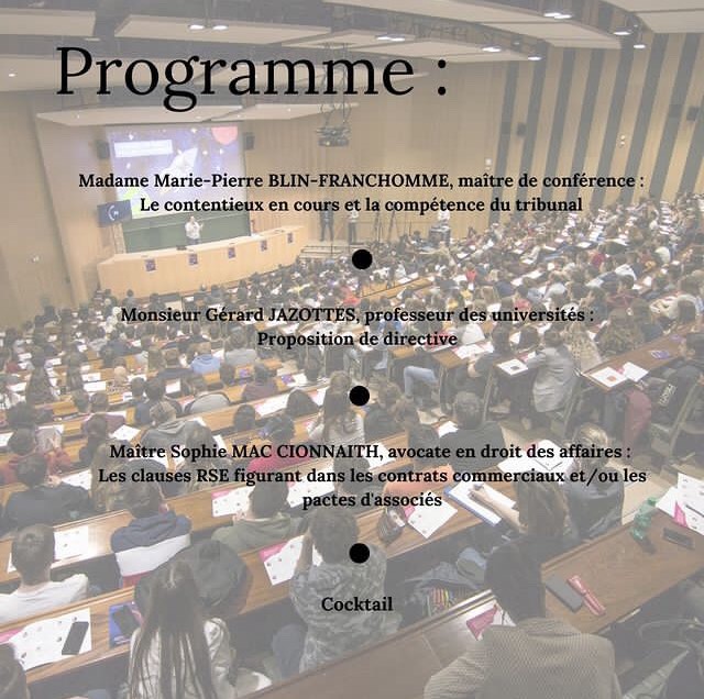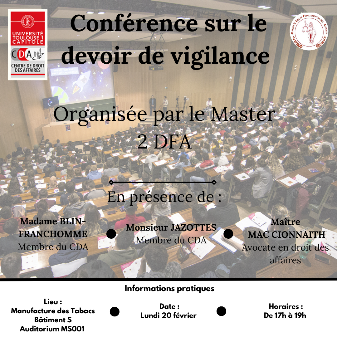 Le Master 2 DFA vous invite à une conférence sur le thème du DEVOIR DE VIGILANCE.