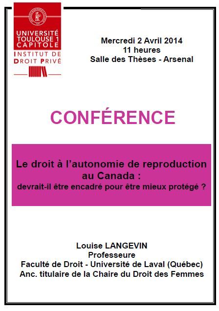 Conférence sur le droit à l'autonomie de reproduction au Canada : devrait-il être encadré pour être mieux protégé ? Animée par Louise LANGEVIN