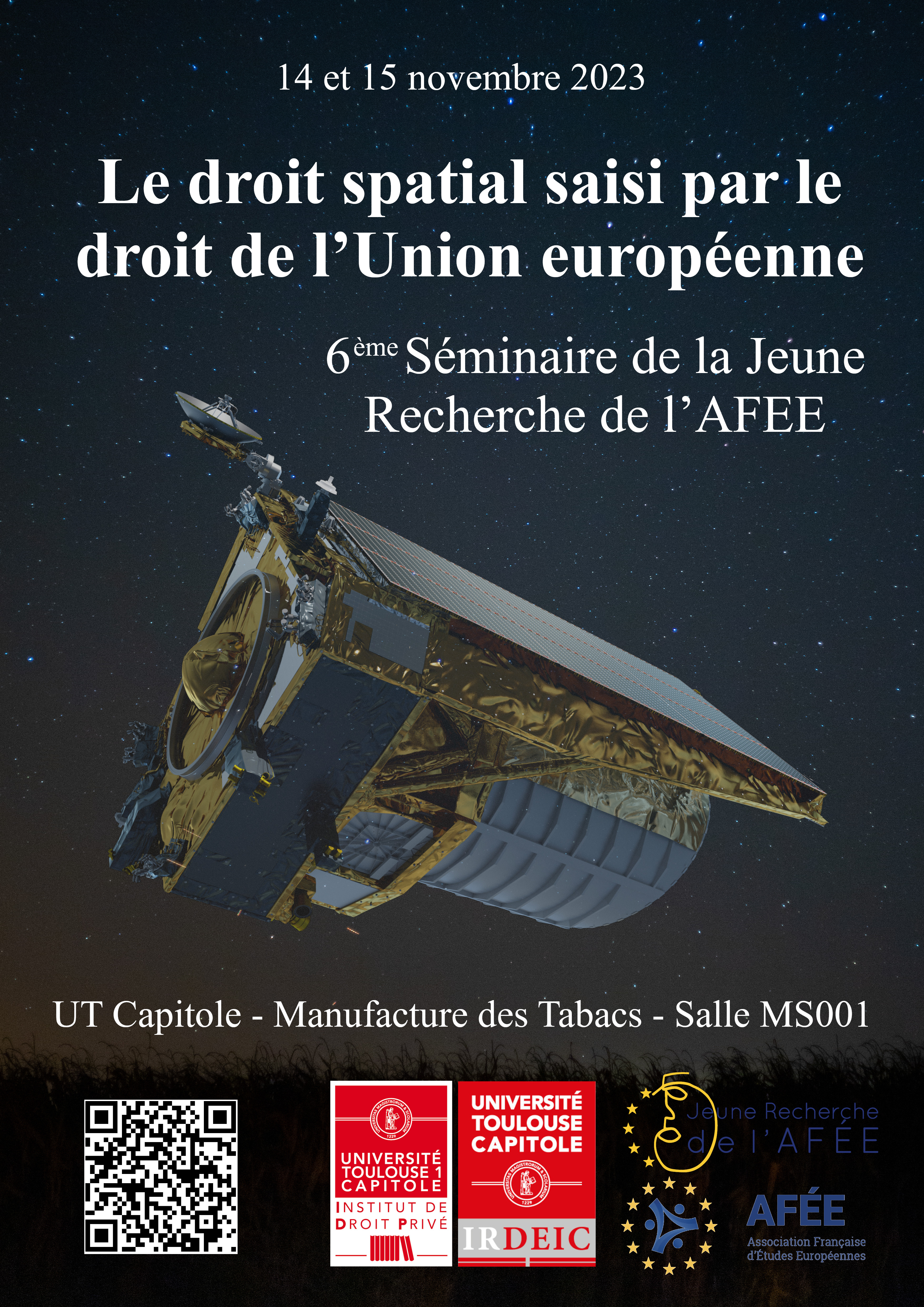 Le réseau Jeune recherche de l’Association Française d’Études organise la 6ème édition de son séminaire annuel les 14 et 15 novembre 2023 à l’Université Toulouse Capitole : «Le droit spatial saisi par le droit de l’Union européenne».
