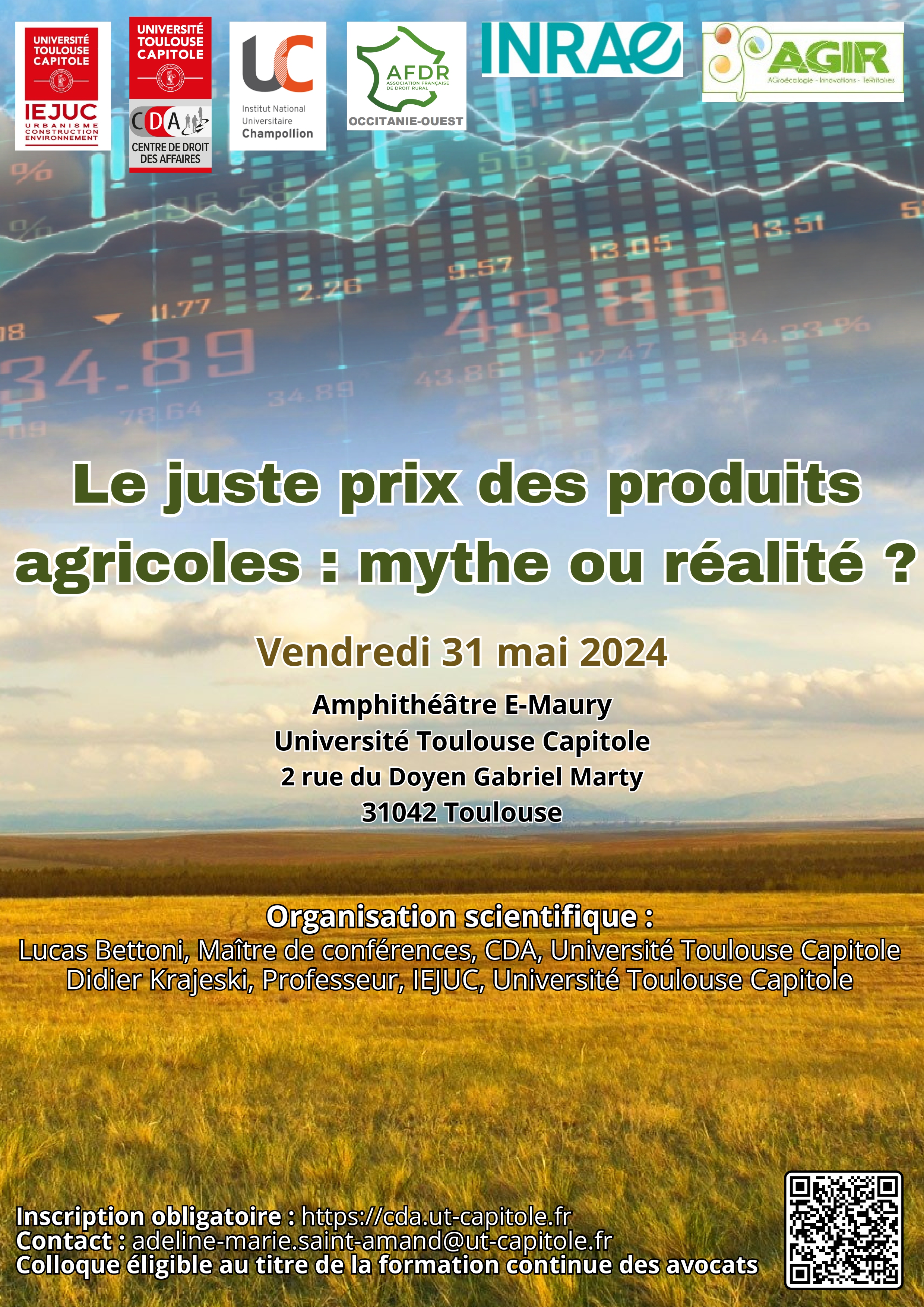En tant que secteur d’activité où opèrent des entreprises, l’agriculture est soumise aux lois du marché : liberté de la concurrence et des prix. Pour autant, le négoce de produits agricoles n’est pas une activité économique comme une autre. Le rôle crucial joué par l’agriculteur dans l’alimentation de la population (cf. le slogan « notre fin sera votre faim » aperçu lors des manifestations du début d’année), dans l’aménagement du territoire et dans la préservation de l’environnement ainsi que les nombreuses contraintes supportées (volatilité des prix, dépendance aux subventions, concentration extrême de la demande, internationalisation du marché, etc.) justifient un interventionnisme des pouvoirs publics, tant en France qu’en Europe. Cette tension entre les impératifs de marché et de régulation se ressent tout particulièrement à propos de la fixation des prix des produits agricoles. Comment en effet assurer aux agriculteurs un revenu décent tout en se conformant aux règles du marché ? De quelles marges de manœuvre disposent les acteurs du marché et les pouvoirs publics dans l’adoption de mesures en faveur du revenu des agriculteurs ? Notamment, comment s’assurer que le rééquilibrage des relations commerciales ne se fasse au détriment du pouvoir d’achat des consommateurs ? Comment enrayer l’échec des réformes législatives ? Ne faut-il pas des mesures de régulation des marchés et des prix agricoles plus franches, comme l’instauration de prix planchers ? Dans un système d’économie du marché, le juste prix des produits agricoles est-il finalement condamné à demeurer un mythe ?