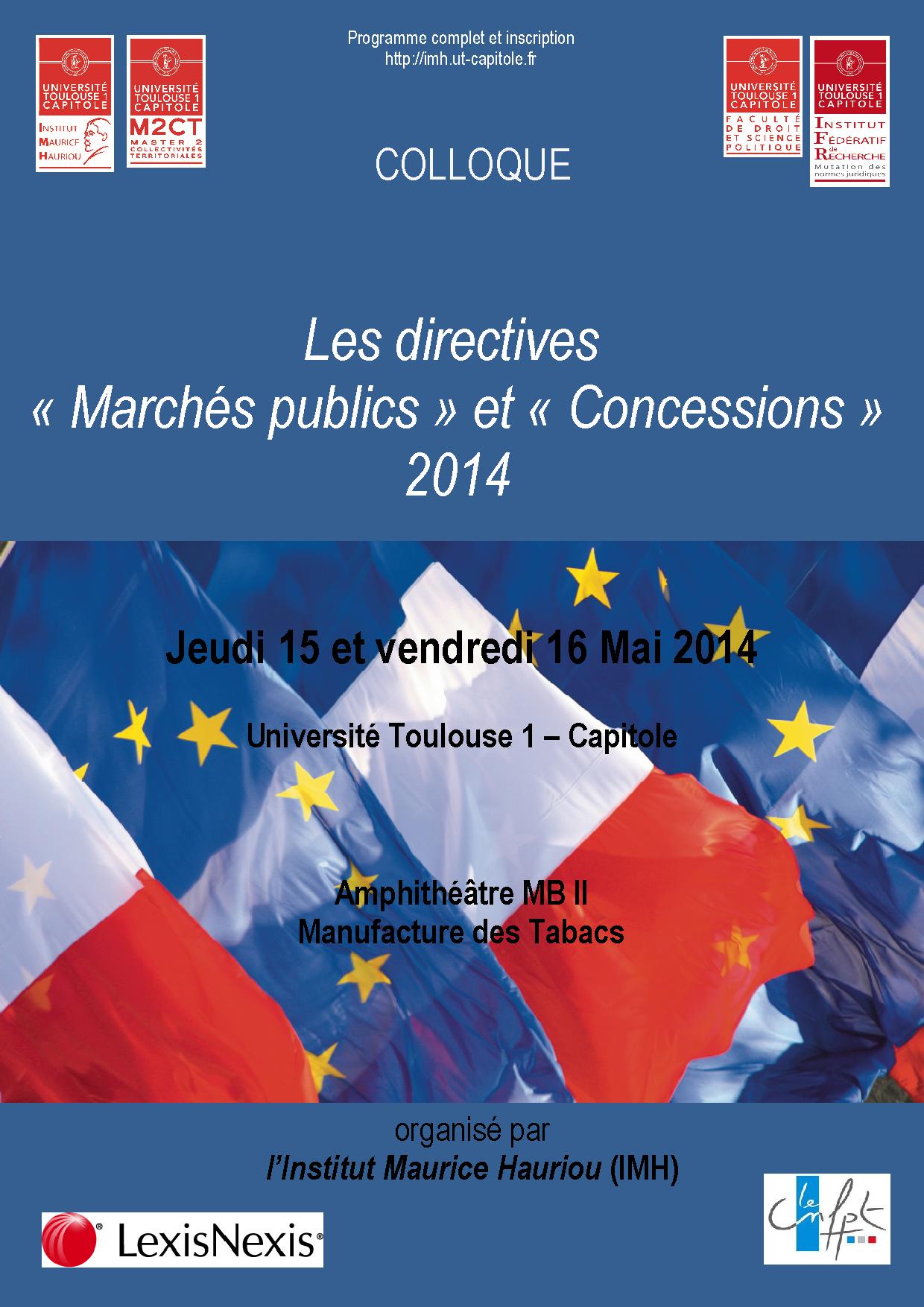 les directives "marchés publics" et concessions" 2014 . Colloque organisé par l'IMH
