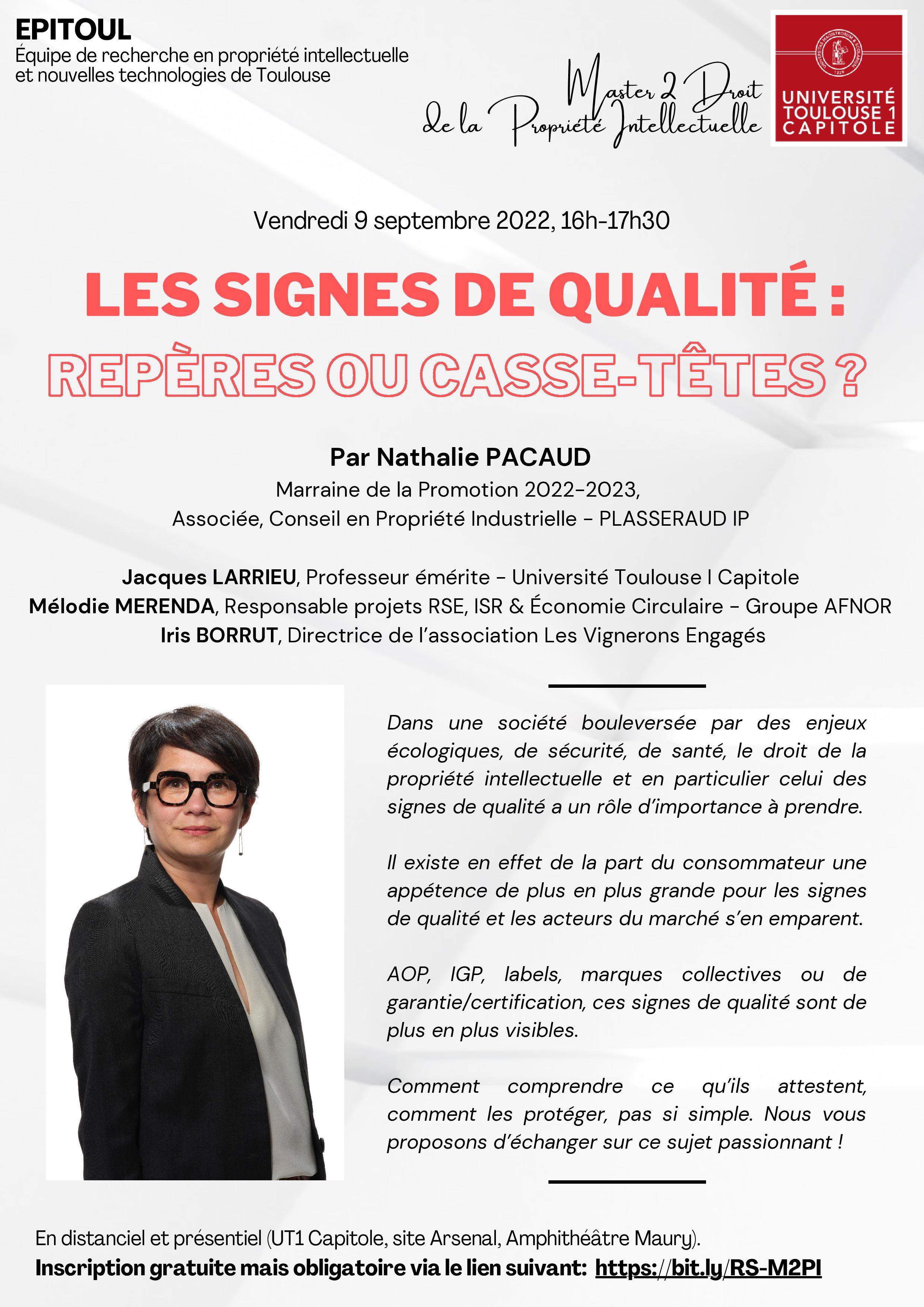 Dans une société bouleversée par des enjeux écologiques, de sécurité, de santé, le droit de la propriété intellectuelle et en particulier celui des signes de qualité a un rôle d’importance à prendre. Il existe en effet de la part du consommateur une appétence de plus en plus grande pour les signes de qualité et les acteurs du marché s’en emparent.