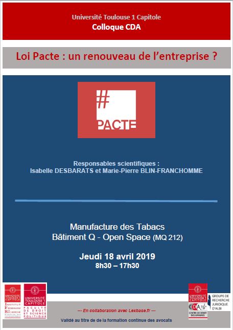 "Loi Pacte : un renouveau de l'entreprise ?", colloque organisé par l'équipe EJERIDD - CDA