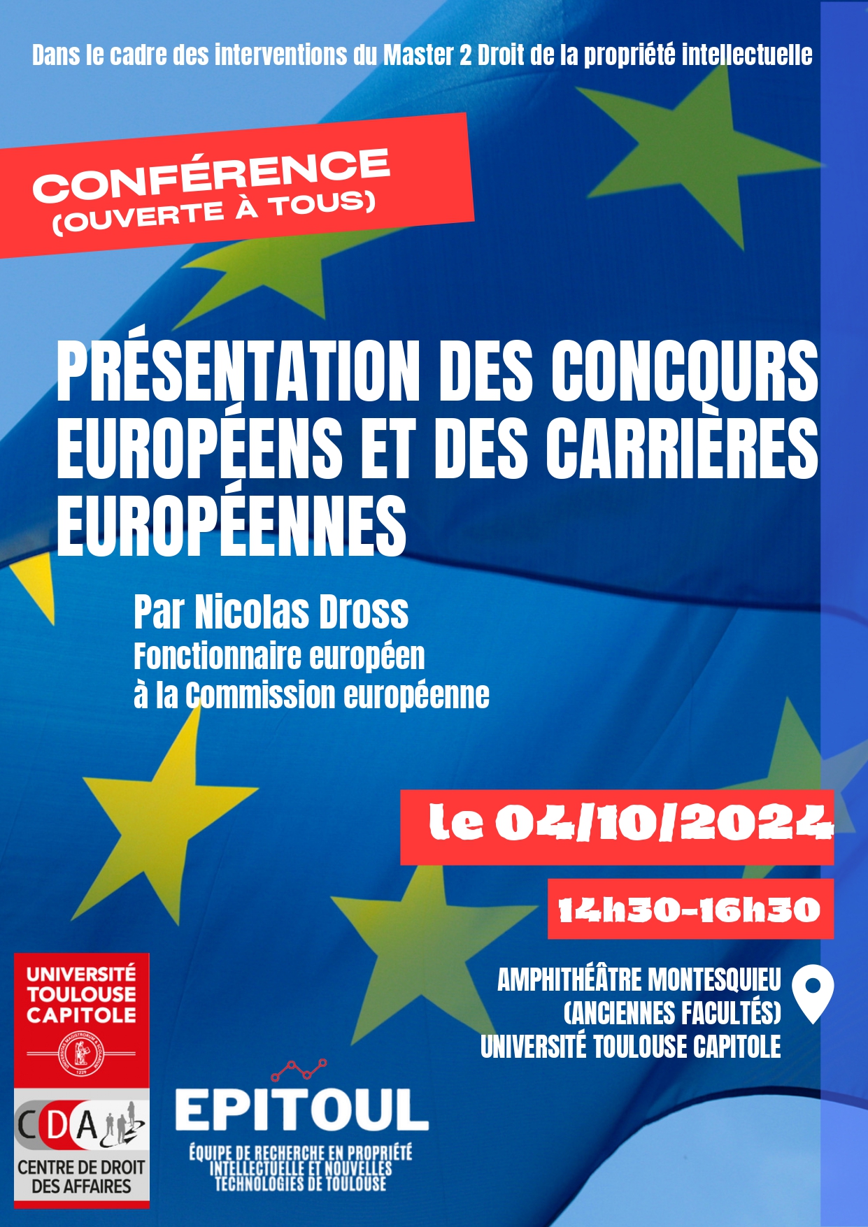 "Présentation des concours européens et des carrières européennes" - conférence du Centre de Droit des Affaires (CDA) et EPITOUL