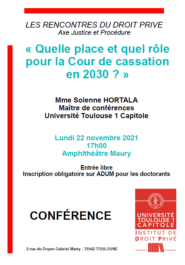 "Quelle place et quel rôle pour la Cour de cassation en 2030 ?", Rencontres du Droit Privé, Solenne HORTALA