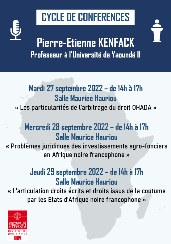 Pierre-Etienne KENFACK, professeur invité, proposera un cycle de trois conférences lors de son séjour à l'université.