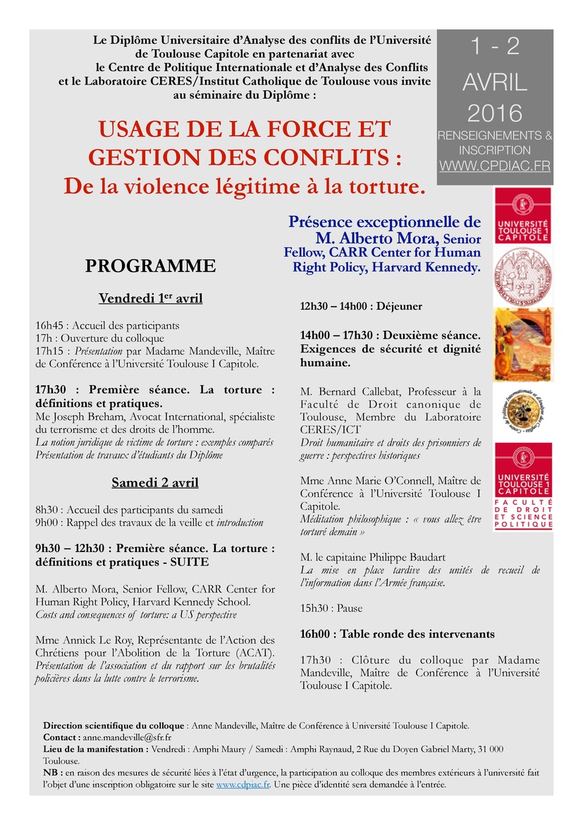 Séminaire sur le thème : "Usage de la force et gestion des conflits: de la violence légitime à la torture" organisé par le DU Analyse des conflits