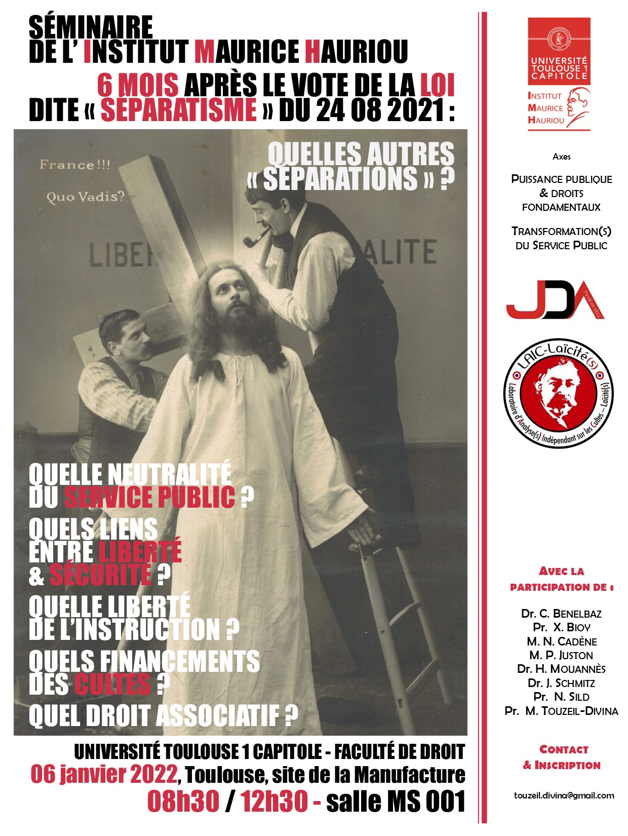 LAIC, Laboratoire d'Analyse(s) Indépendant sur les Cultes - Laïcité(s), en partenariat avec l'Institut Maurice Hauriou.