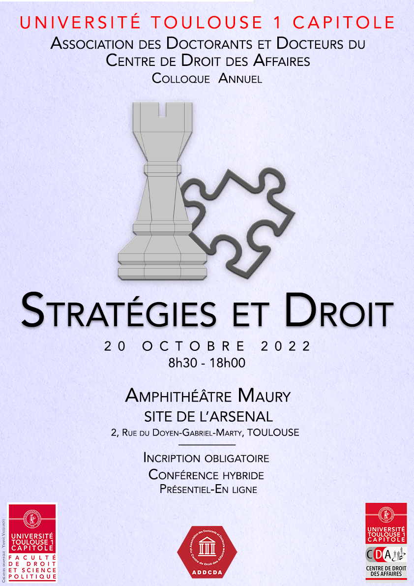 "Stratégies et Droit", colloque organisé par l'Association des Doctorants et Docteurs du Centre de Droit des Affaires