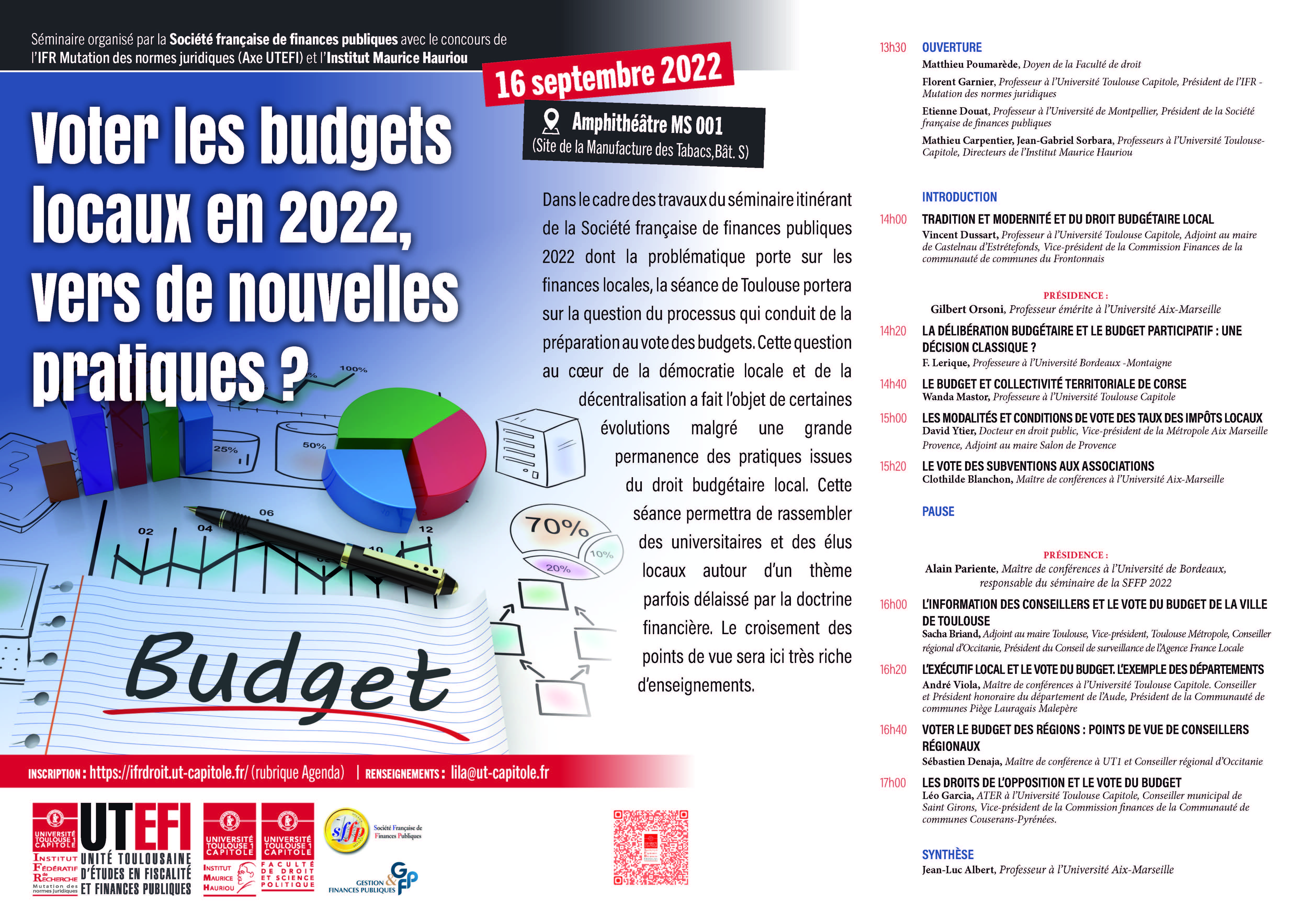 UTEFI.2022. Séminaire : Voter les budgets locaux en 2022, vers de nouvelles pratiques ?