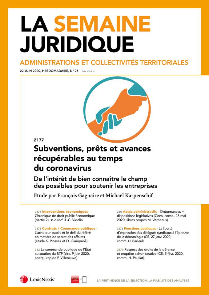 Chronique annuelle de « Droit public économique », La Semaine juridique- Edition Administration et collectivités territoriales (JCP A) n° 25, 22 Juin 2020, 2174. Chronique sous la Direction de Jean-Christophe Videlin, Droit public économique 2/2