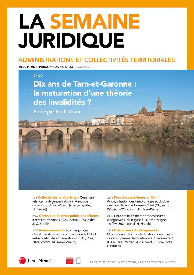 Ont contribué à cette chronique : Sébastien Bernard, professeur de droit public, université Grenoble Alpes, CRJ/GRDPE ; Romain Bourrel, maître de conférences en droit public, université Grenoble Alpes CRJ/GREAT ; Sébastien Brameret, maître de conférences en détachement à la chambre régionale des comptes AURA ; Laurence Calandri, maître de conférences HDR, université de Toulouse 1 Capitole, IDETCOM (EA785) ; Jean-François Calmette, maître de conférences, HDR, en droit public à l'université de Perpignan Via Domitia, CDED-YS et chercheur associé au CEFF ; Denis Jouve, professeur de droit public, université Paris 8 ; Aurore Laget-Annamayer, professeur de droit public, université Paris Dauphine ; Régis Lanneau, maître de conférences, université Paris X Nanterre.