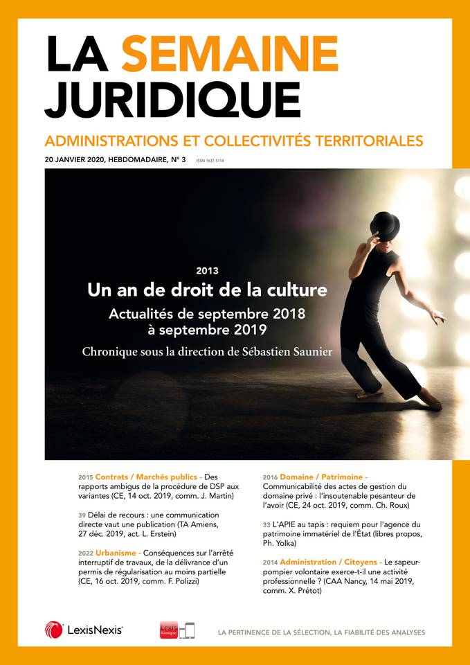 Chronique "Un an de droit de la culture actualités de septembre 2018 à septembre 2019", sous la Direction de Sébastien Saunier