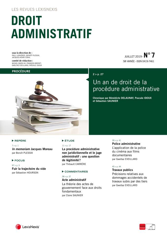 Revue Droit Administratif n°7 juillet 2019. Chronique sous la Direction de Sébastien Saunier.