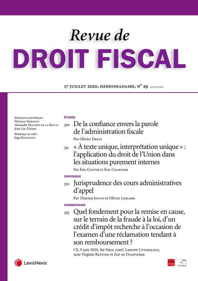 Etude par Olivier Debat professeur agrégé à l'université Toulouse Capitole directeur du Master 2 en droit fiscal, directeur scientifique de la Revue fiscale du patrimoine.