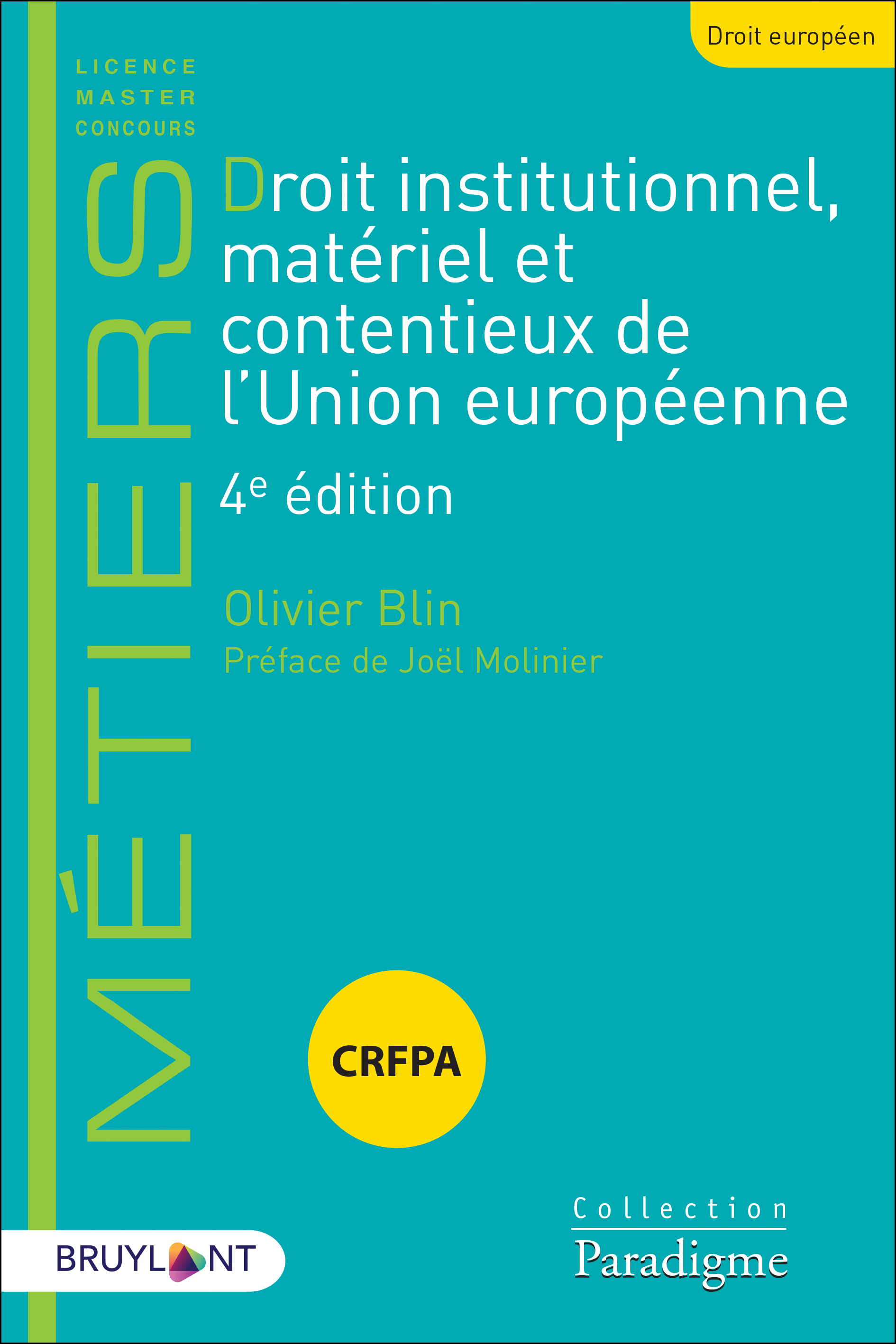 ISBN 9782390132974 Titre Droit institutionnel, matériel et contentieux de l'Union européenne Date de parution Septembre 2020 Langue Français Auteur(s) Olivier Blin Editeur Bruylant