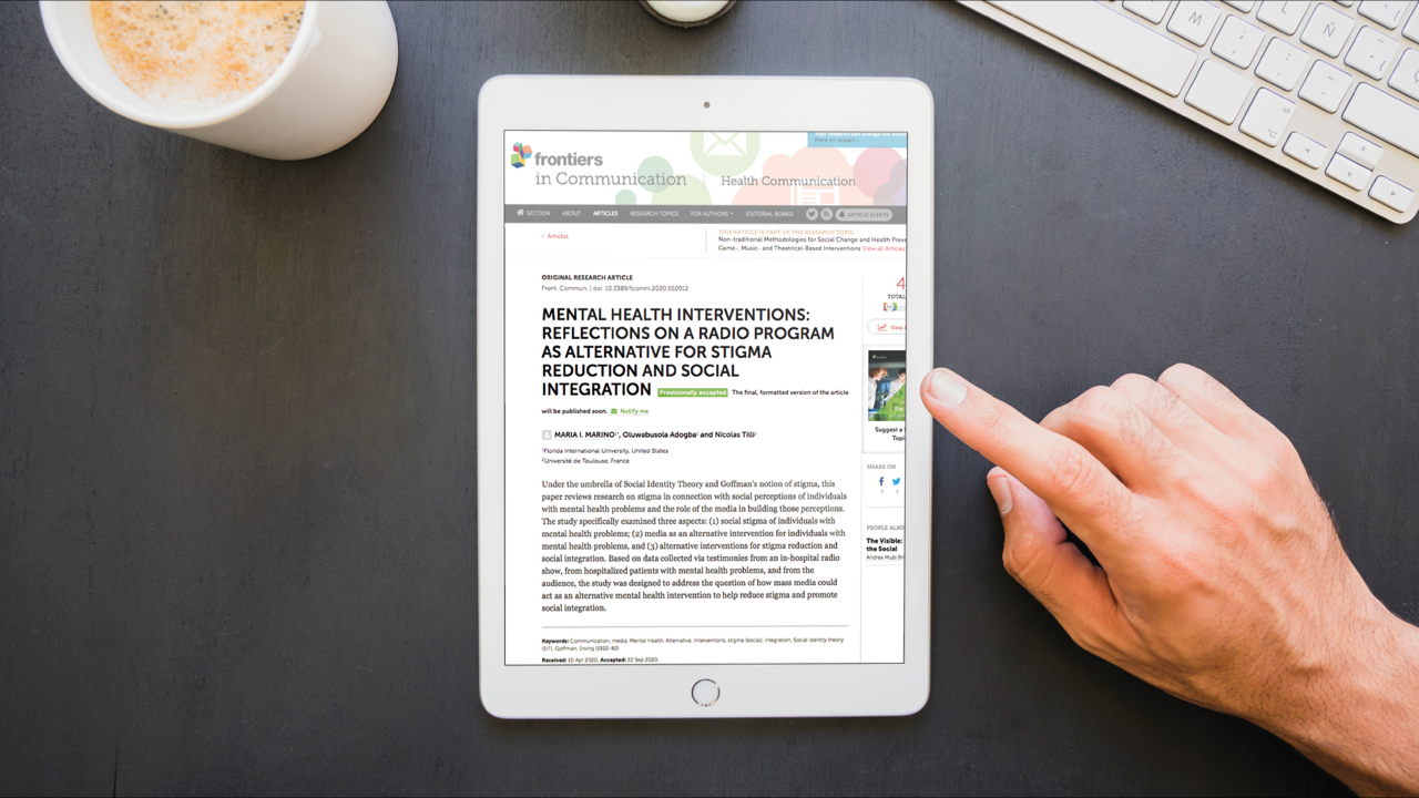 L’article s’intitule « Mental Health Interventions : reflections on a radio program as alternative for stigma reduction and social integration » (Interventions en santé mentale: réflexions sur une émission de radio comme alternative à la réduction de la stigmatisation et à l’intégration sociale).