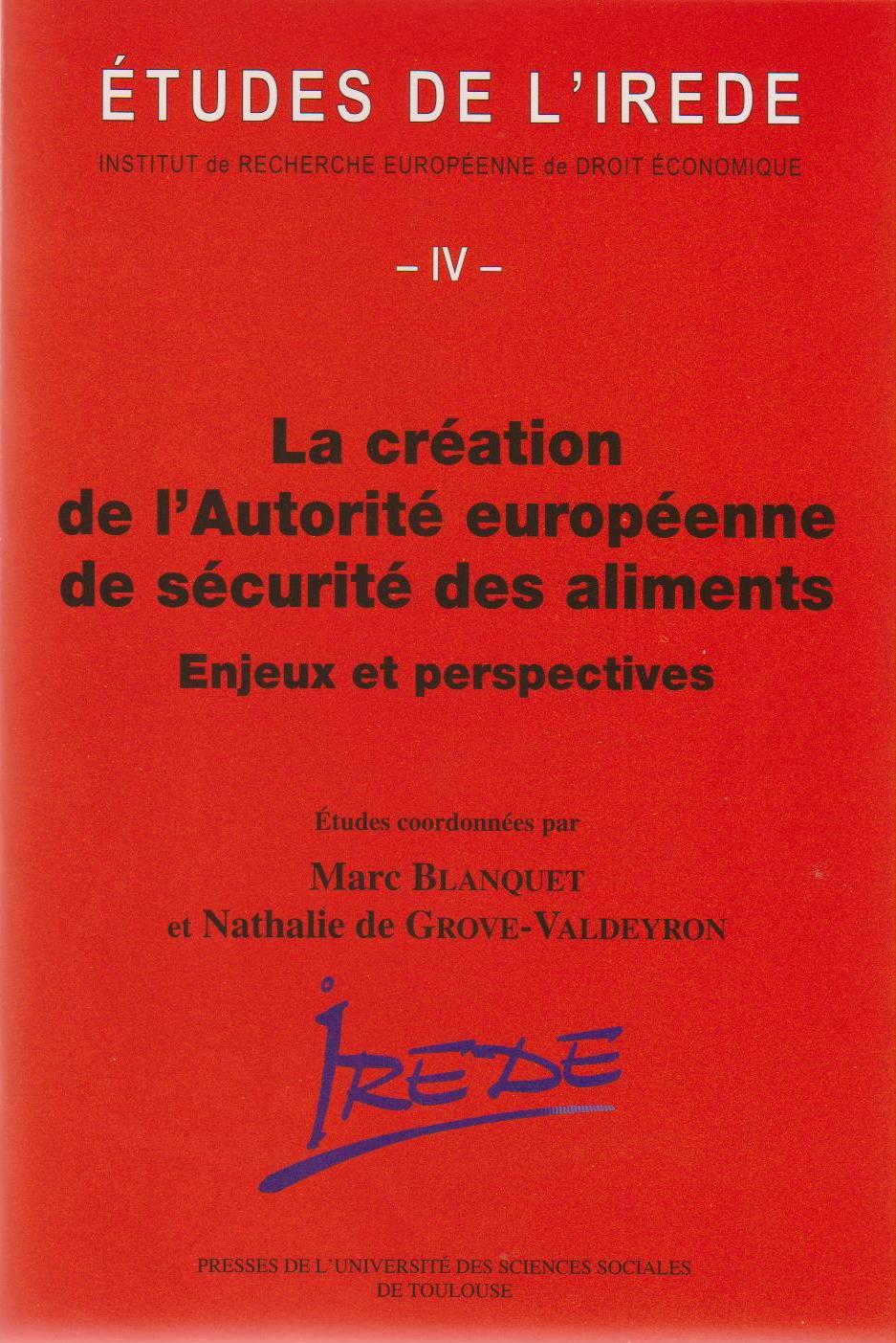 "La création de l'Autorité européenne de sécurité des aliments enjeux et perspectives" Études de l'IREDE IV coordonnées par Marc Blanquet et Nathalie de Grove-Valdeyon; IRDEIC