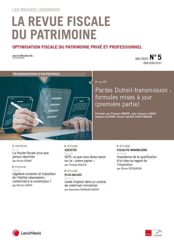 Édito par Olivier DEBAT professeur des universités, - directeur de la Revue fiscale du patrimoine, - directeur du master 2 droit fiscal de l’université Toulouse Capitole. La revue fiscale du patrimoine n° 5, Mai 2023.