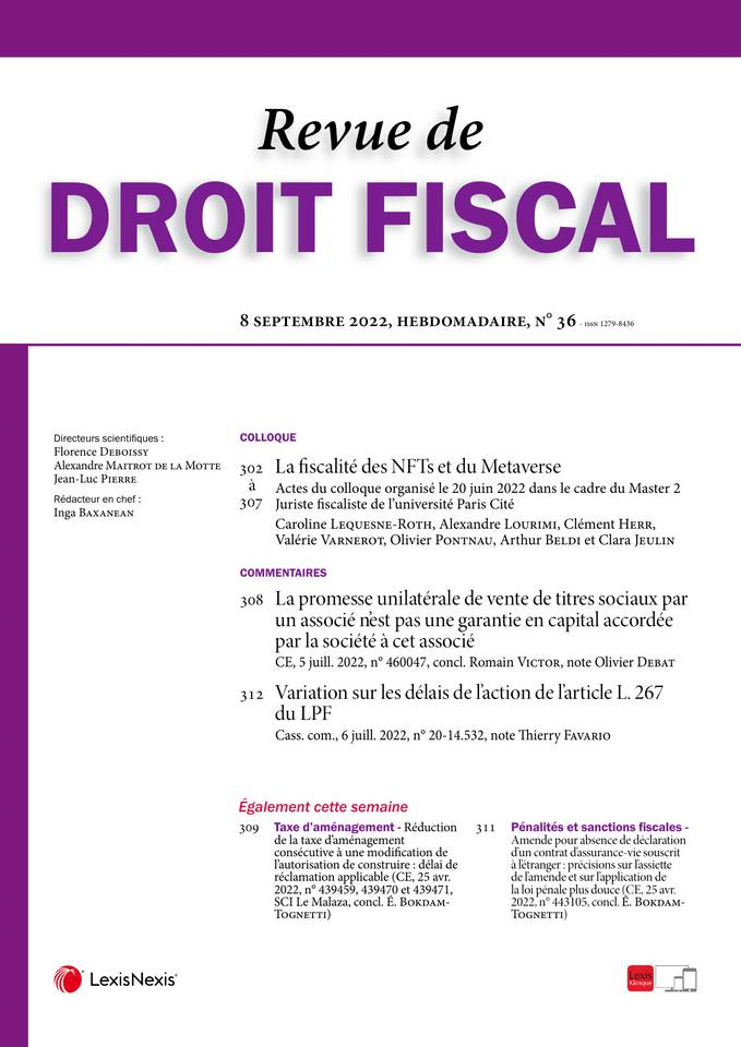 Revue Droit Fiscal du 8 septembre 2022, n°36, communication n°308