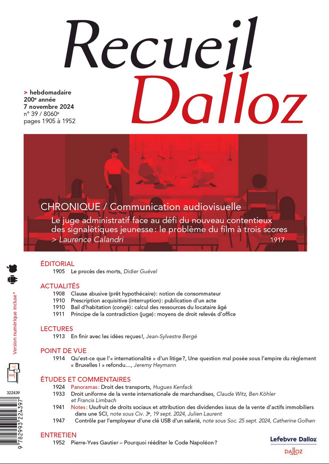 Recueil Dalloz - 7 novembre 2024, n°39, 1917-1924. Chronique/ Communication audiovisuelle.