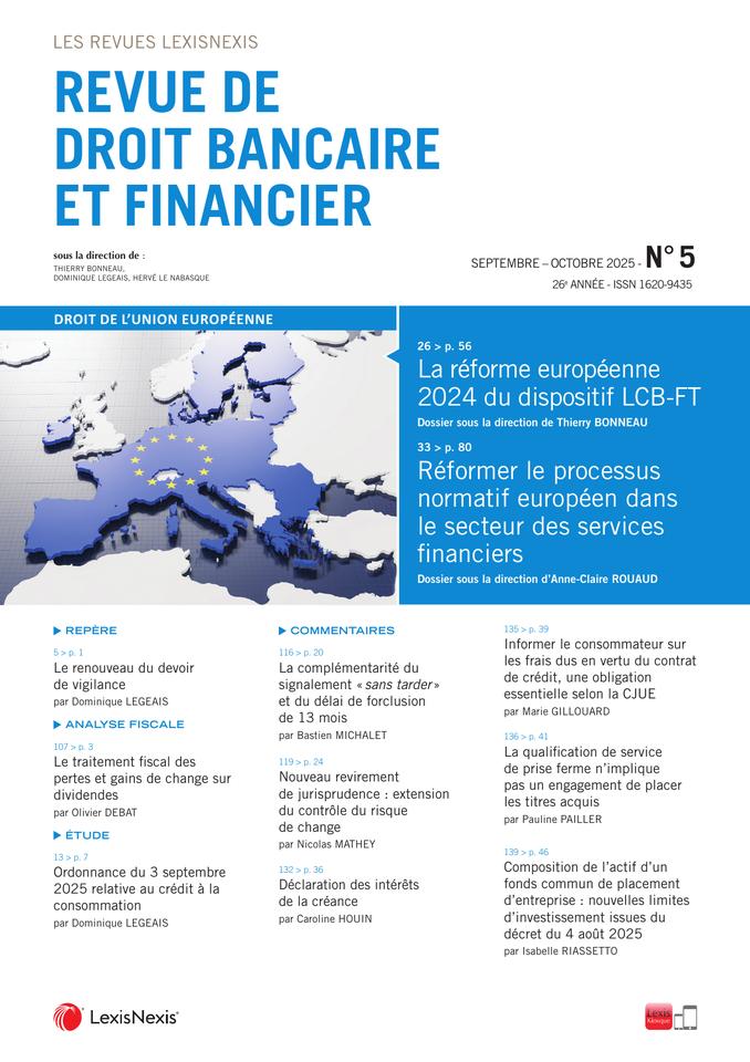 Revue de Droit bancaire et financier n° 5, Septembre-octobre 2025, alerte 107