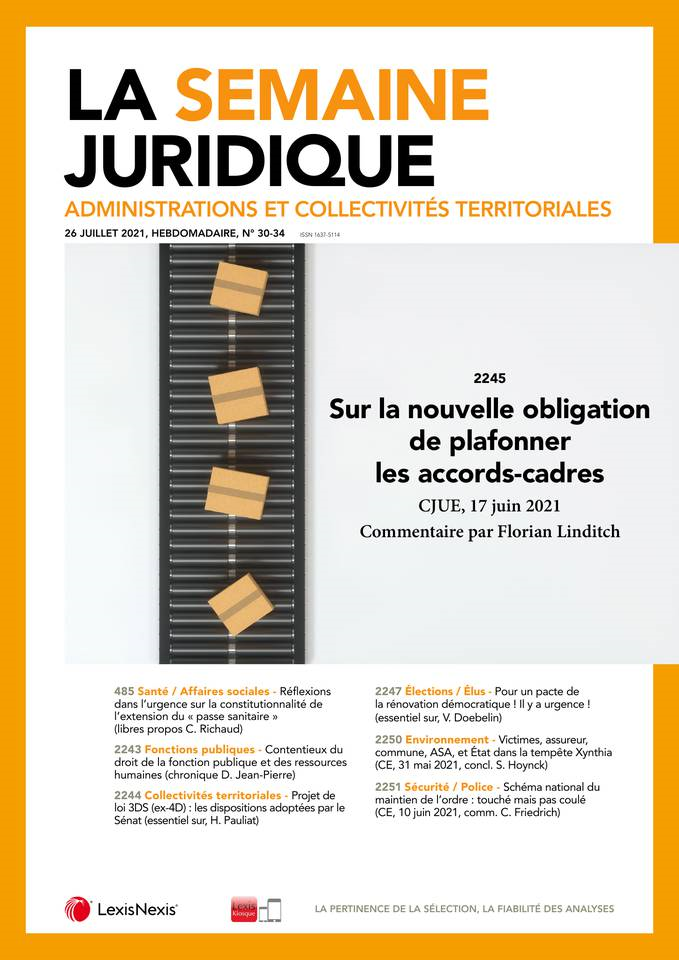 JCPA, 26 juillet 2021, n°30-34, page 34. Christophe DOUBOVETZKY, docteur en droit public, qualifié aux fonctions de maitre de conférences, enseignant contractuel en droit public, INU Champollion, IDETCOM (EA 785), Université Toulouse 1 Capitole.