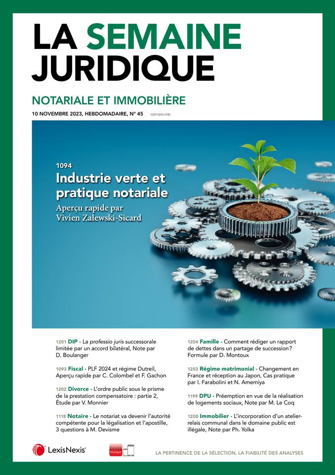 La semaine juridique - Notariale et Immobilière. N°45 du 10/11/2023. Actualités 1093