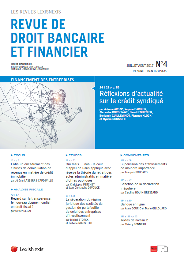 Revue de droit bancaire et financier 2017, n° 4, alerte 42.
